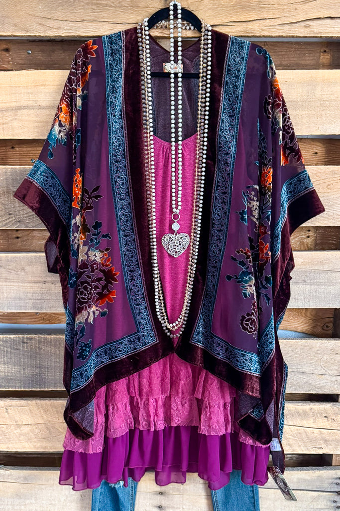 Follow My Heart Burnout Velvet Kimono - Burgundy Flower