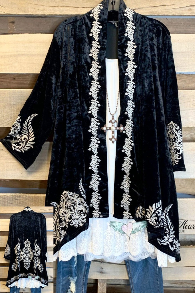 AHB EXCLUSIVE: Crushed Velvet Embroidered Cardigan - Black