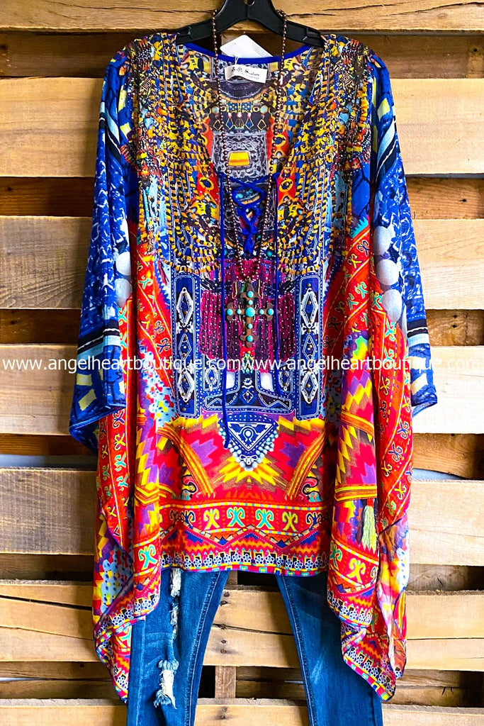 • Flower Child Oversized Sheer Tunic  - Red Mix [product type] - Angel Heart Boutique