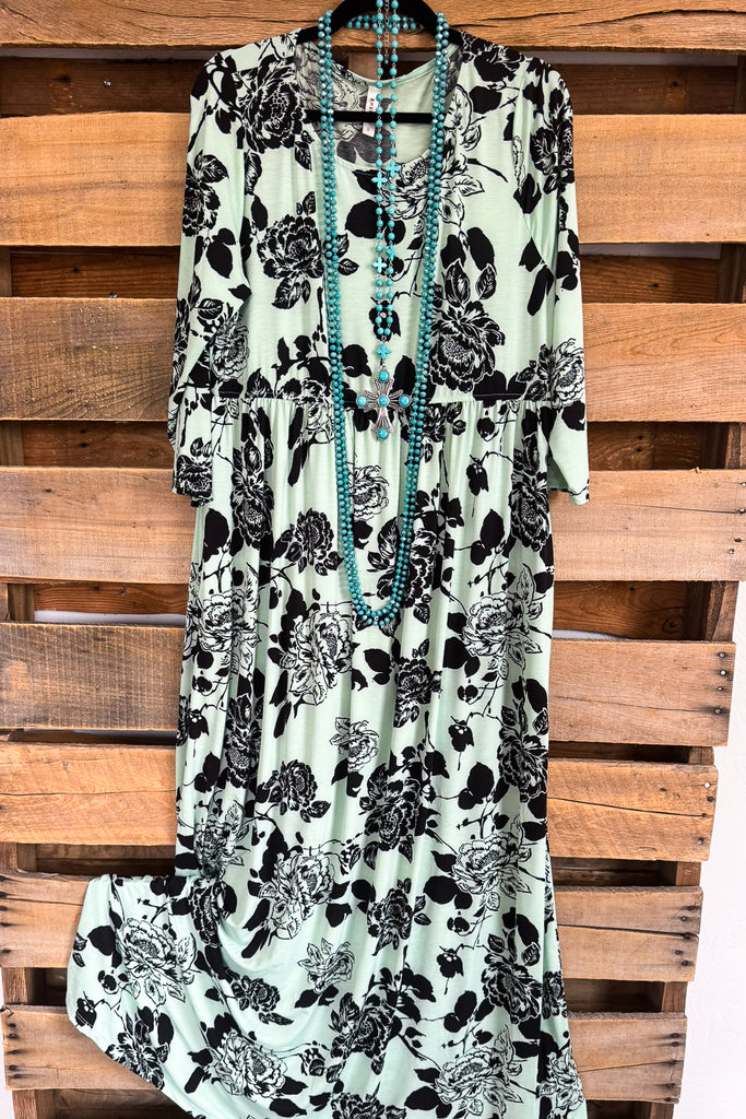 Painted Floral Maxi Dress - Sage
