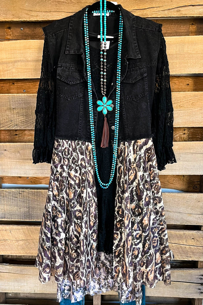 AHB EXCLUSIVE: All The While Vest/Duster - Black/Leopard - 100% COTTON