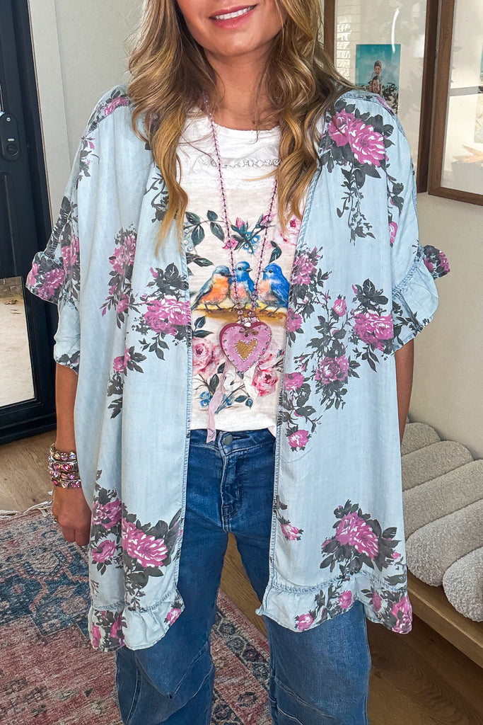Bloom In Motion Cardigan - Lt. Denim