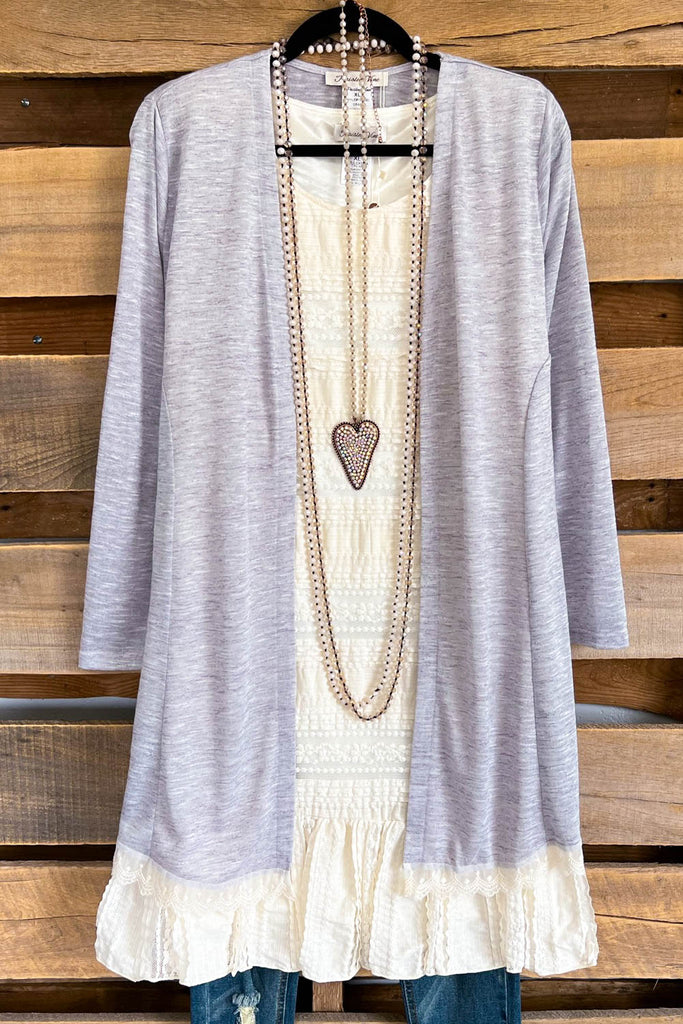 Stroll At Dawn Lace Back Cardigan - Grey - SALE
