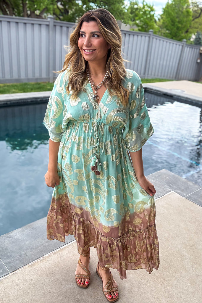 Sunset Paisley Dream Maxi Dress - Mint