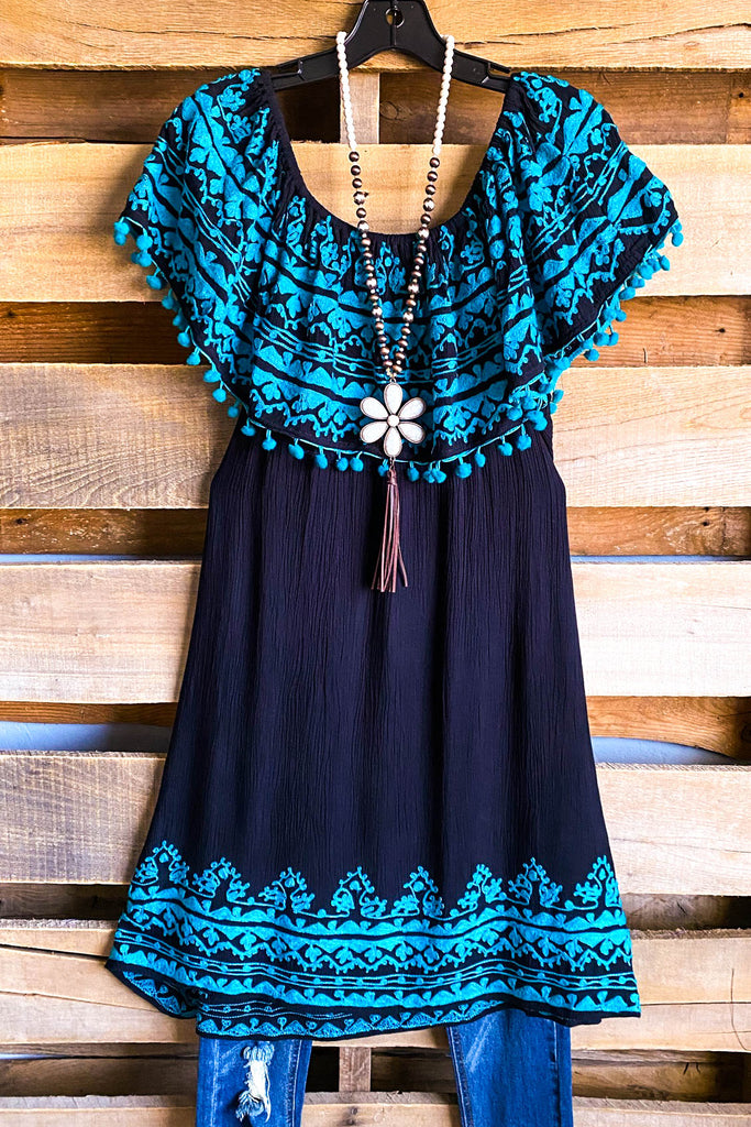 AHB EXCLUSIVE: Beautiful Reflections Tunic - Black/Turq - SALE