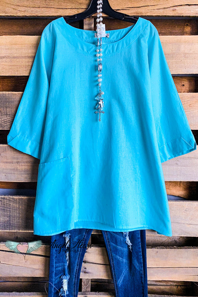 Horizon Hopes Top - Aqua - LINEN AND COTTON - SALE