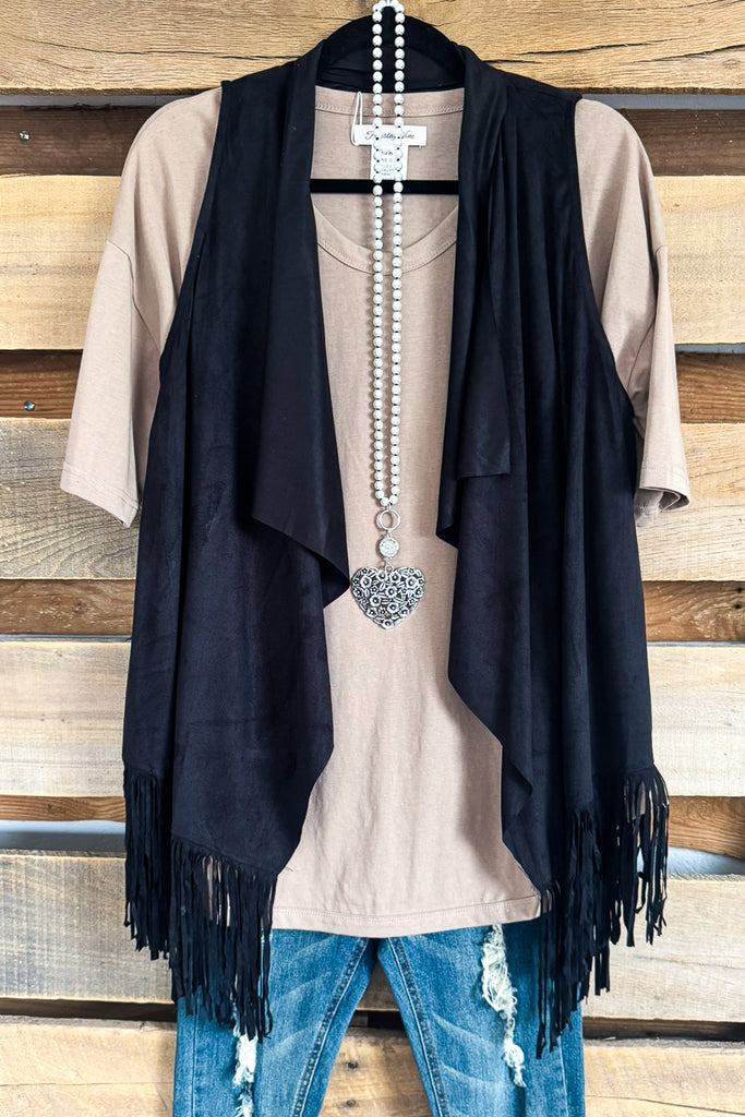 The Perfect Outlook Fringe Vest - Black - 100% COTTON