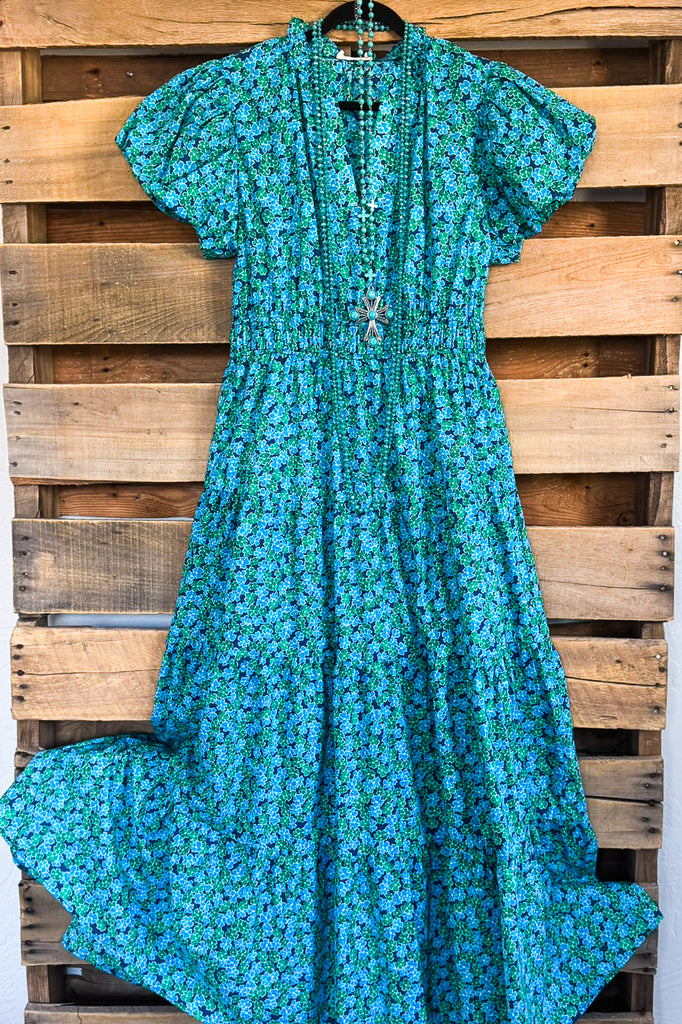 Carefree Attitude Dress - Blue Combo - 100% COTTON - SALE