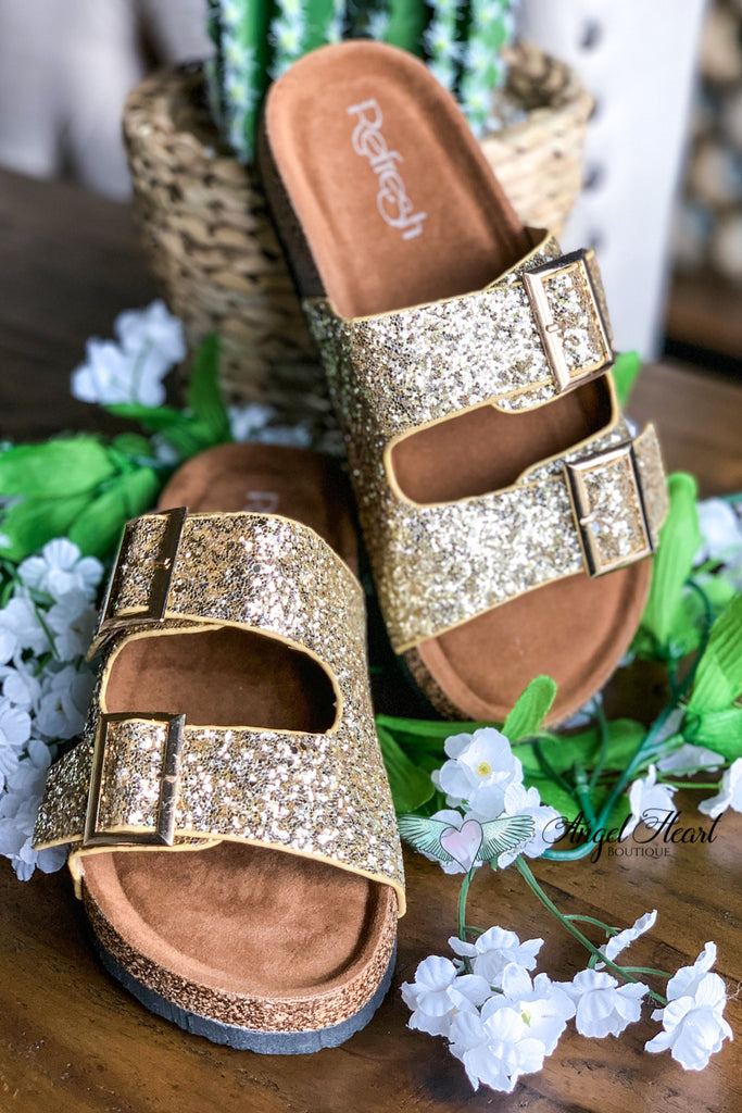 Shine Bright Buckle Sandals - Champagne Gold - SALE size 5.5