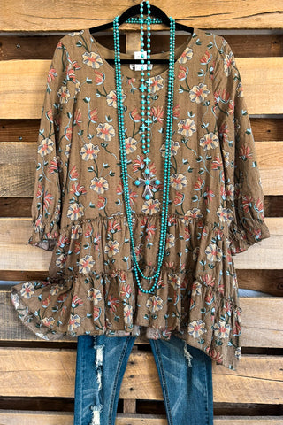 Sunlit Meadows Top - 100% Cotton - Mocha - SALE